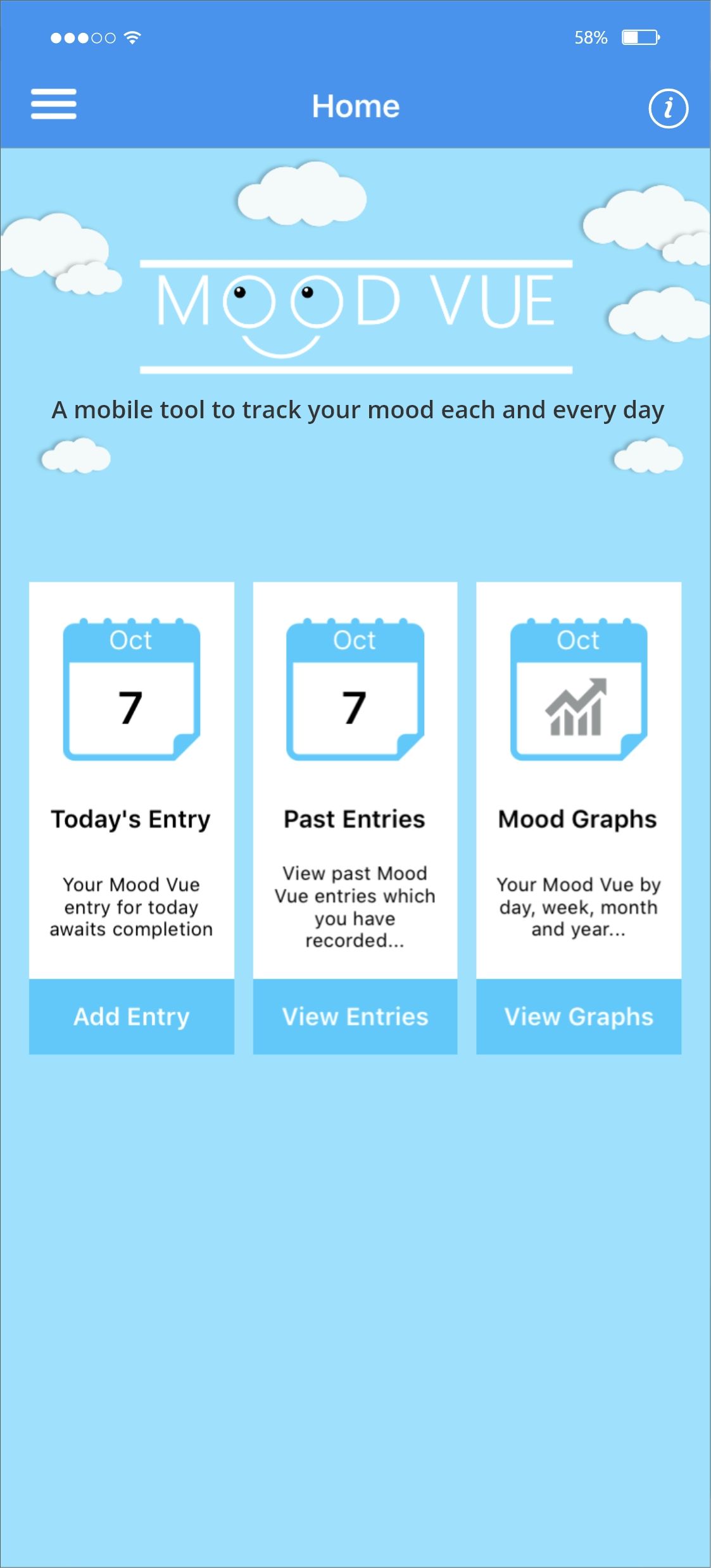 Welcome to Mood Vue, your Mobile Tool to track and measure your mood in a clinically validated and secure manner.